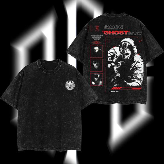 [Collection] Simon "Ghost" Riley Skull Mask Warrior Call of Duty: Modern Warfare II Edition Double Printed Oversize Lightweight Acid Washed Tee