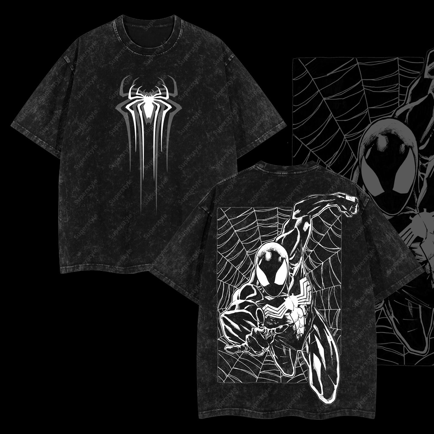 [Collection] Friendly Neighborhood Spider-man Black Suit Hero Marvel MCU Edition Double Printed Oversize Lightweight Acid Washed T-Shirt
