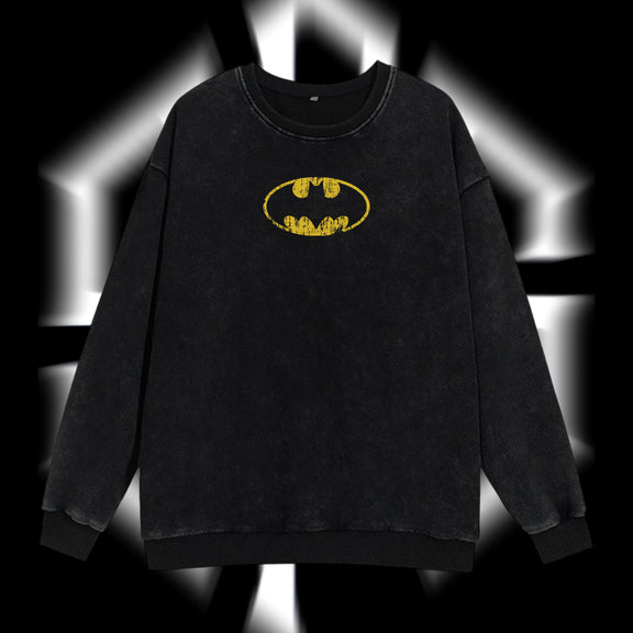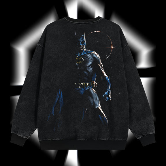 The Dark Knight "Batman" - The Gotham Guardian Hero Verse DC Comic Edition Double Printed Oversize Lightweight Acid Washed Sweater