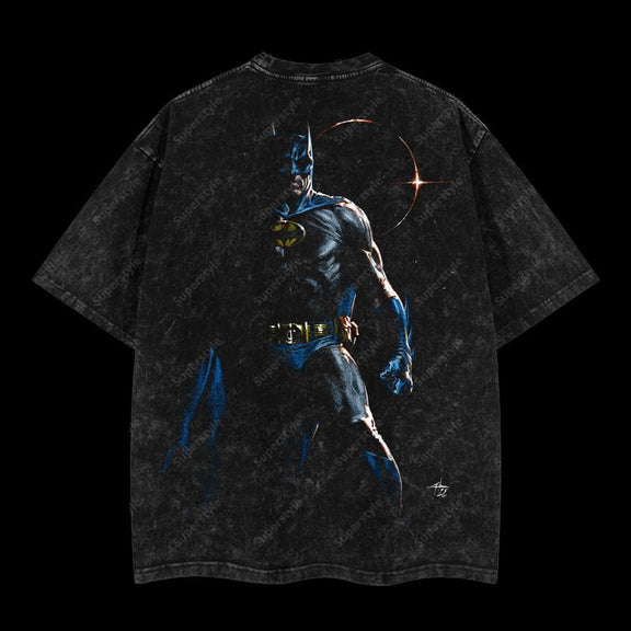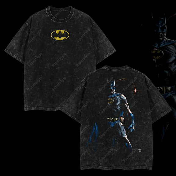 The Dark Knight "Batman" - The Gotham Guardian HeroVerse DC Comic Edition Double Printed Oversize Lightweight Acid Washed T-Shirt