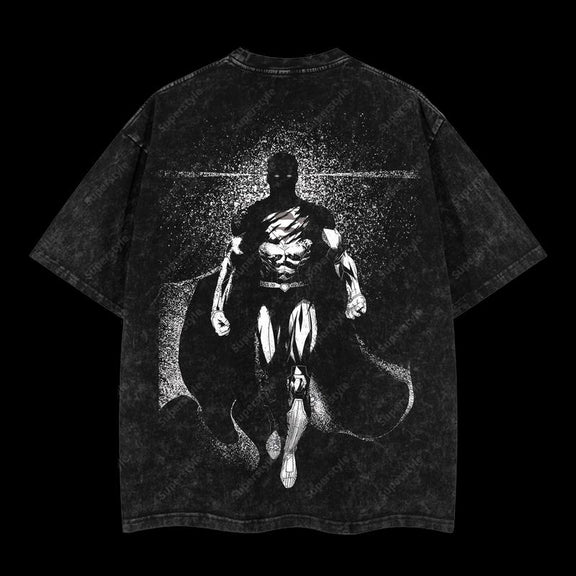 The Man of Steel "Superman" Clark Kent DC Comic Edition Double Printed Oversize Lightweight Acid Washed T-Shirt